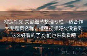 标题:“榴莲视频 关键细节整理专栏 · 适合作为专题页名称” 在现代数字媒体的快速发展中,视频内容已...